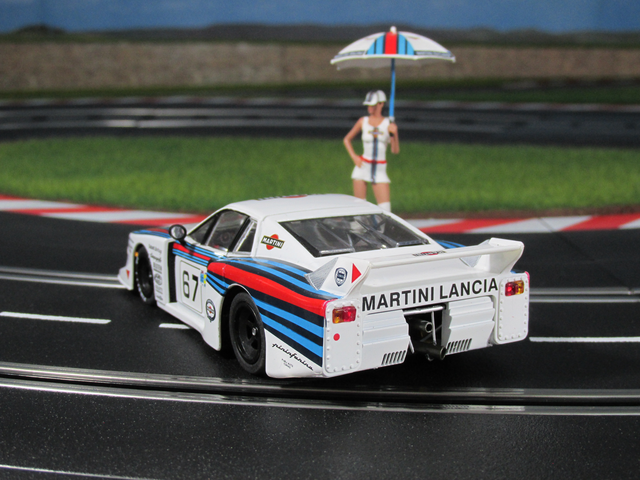 Das Original hat das Ende des Rennens aus der Box ansehen müssen, dafür sieht die Martini Lackierung aber sehr cool aus. Das Modell hat Slot.it Fahrwerkkomponenten und ist damit sehr gut auf meiner Rennbahn unterwegs.