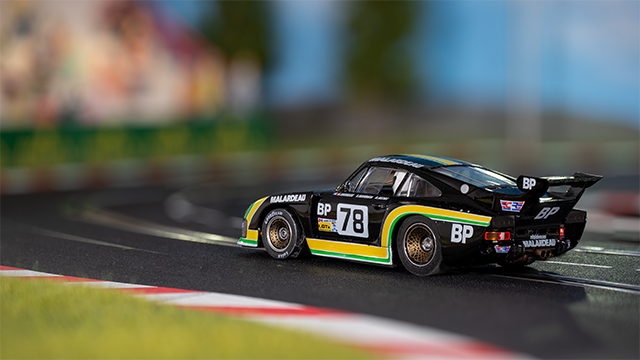 Diese Model erwarb ich auf der Mannheimer Slotcarbörse 2025. Leider hatte das Fahrzeug die bekannte Fly Qualität. Das Ritzel war gebrochen. Weil ich schon mal dabei war, bekam der Porsche Felgen und einen 24k Motor von Slotdevil. Trotz Blei darf ich bei Start nicht zu viel Gas geben, sonst hebt die Front ab und das Slotcar deslottet.