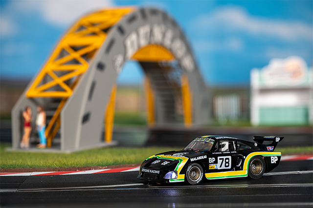 Diese Model erwarb ich auf der Mannheimer Slotcarbörse 2025. Leider hatte das Fahrzeug die bekannte Fly Qualität. Das Ritzel war gebrochen. Weil ich schon mal dabei war, bekam der Porsche Felgen und einen 24k Motor von Slotdevil. Trotz Blei darf ich bei Start nicht zu viel Gas geben, sonst hebt die Front ab und das Slotcar deslottet.